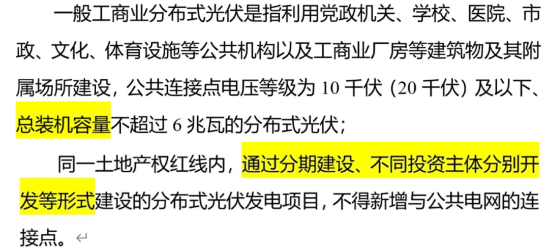 新管理辦法明確為:某公共連接點下的總?cè)萘?。這樣以來,大項目就很難拆分成多個6MW以下的項目實施。